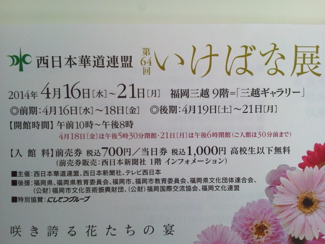 今年も「西日本華道連盟 いけばな展」が4月16日(水)~4月21日(月)まで、