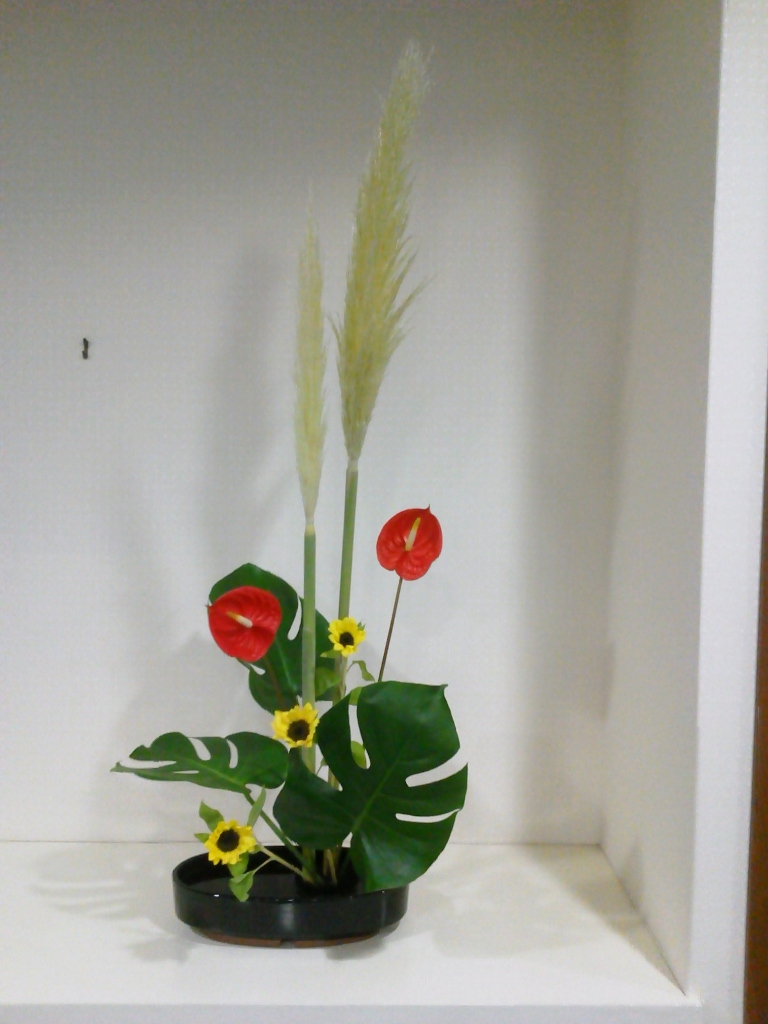 会場に行ってから、インスピレーションで生けるしかない・・・ 泣きたい気分です。