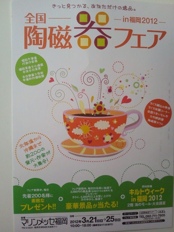3月25日までマリンメッセ福岡で全国陶磁器展が開催されていますので、明日、明後日とお時間のある方は