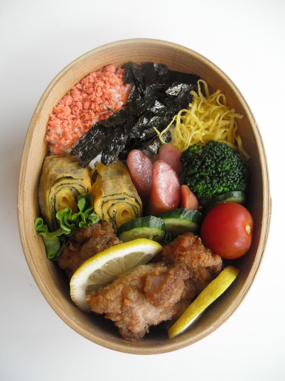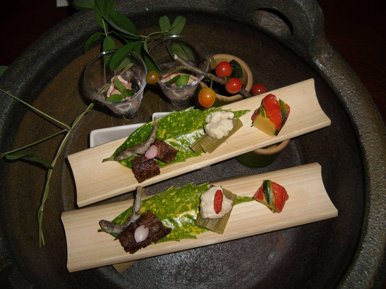 2段目はお野菜と桜餅。ゆずポン酢と自家製お味噌でいただきます。