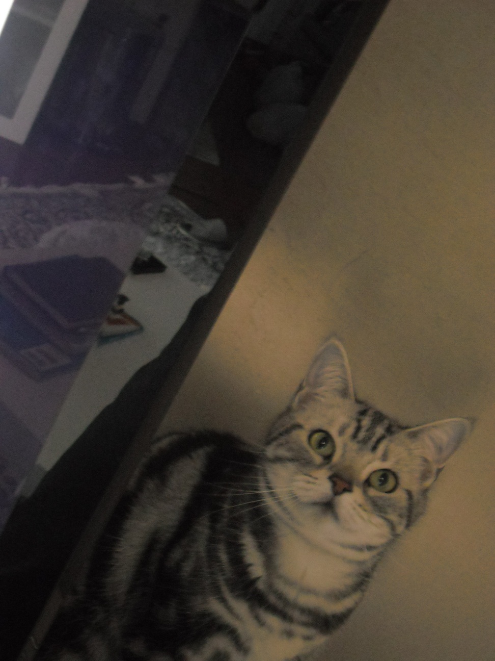 でも、薄型になるとななちゃんがテレビの上に乗れません。