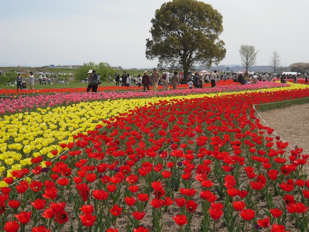 昨日、遠賀川河川敷の「直方チューリップ祭り」に行ってきました。