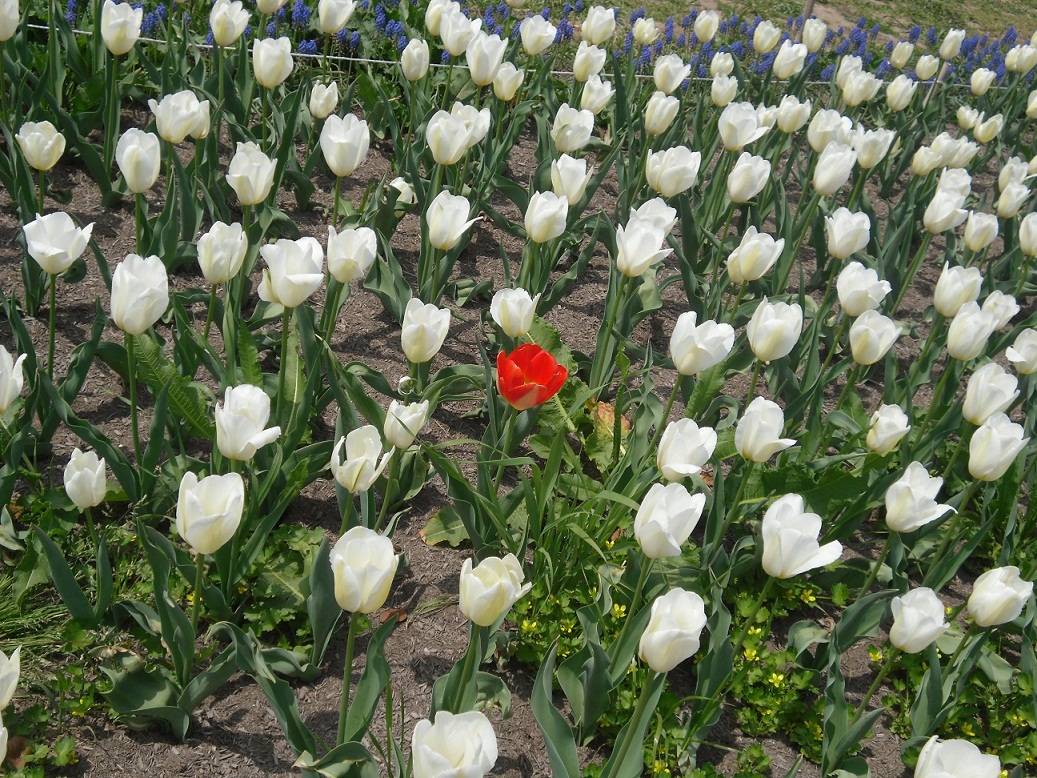 1本だけ赤いちゅりっぷが咲いてます。