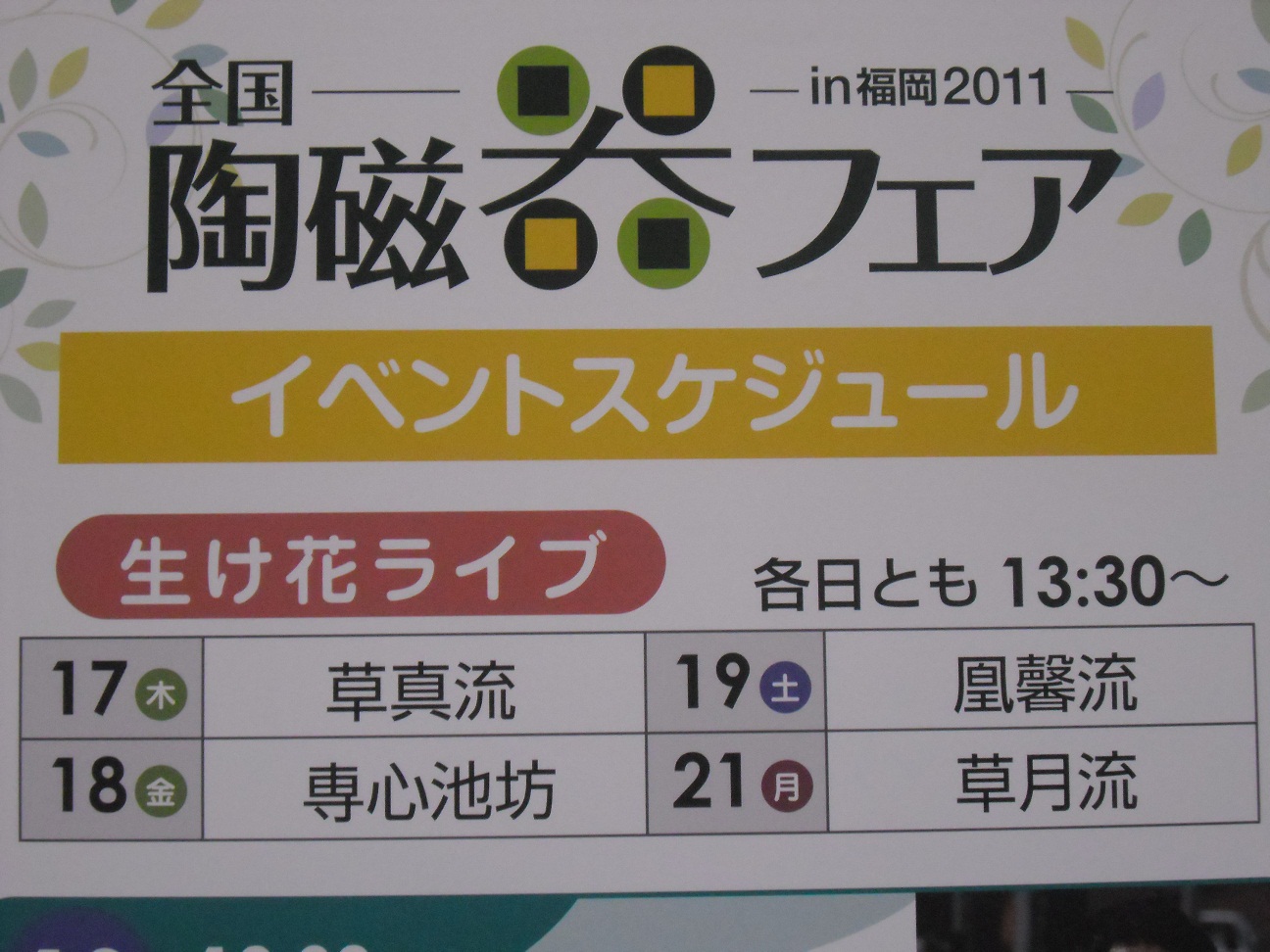 明日18日は13時半から1時間いけばなライブです。