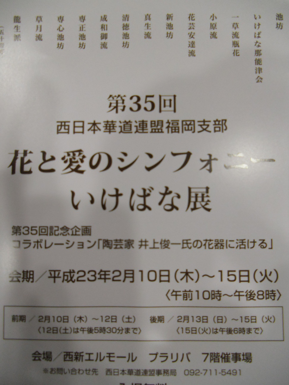 専心池坊福岡支部は2月13日(日)~15日(火)に