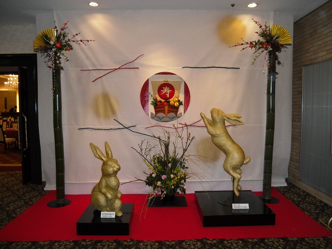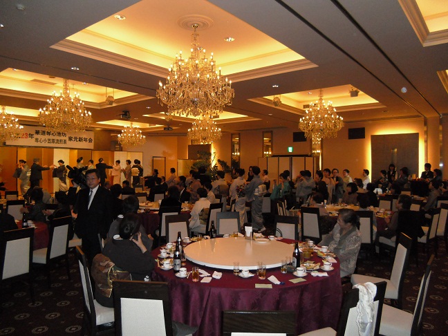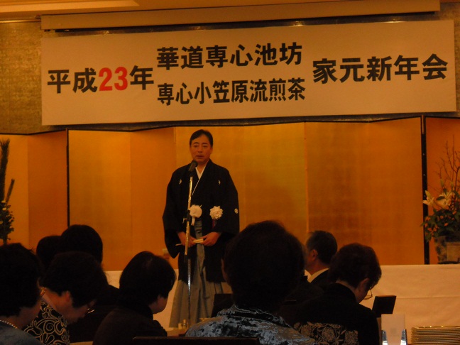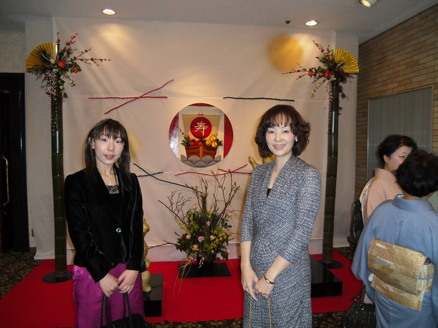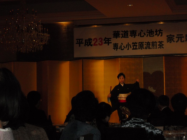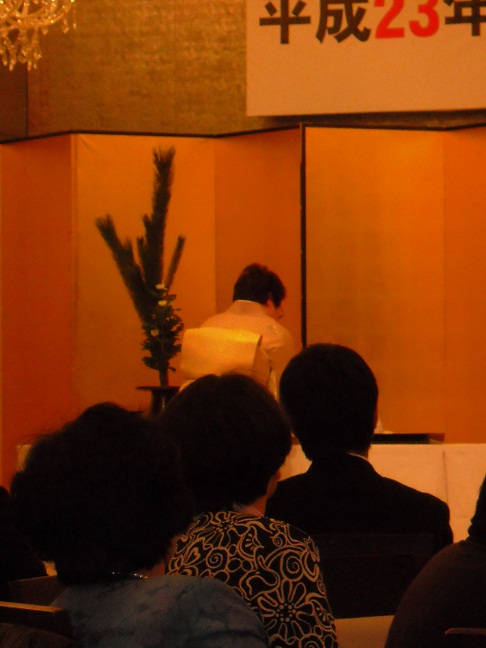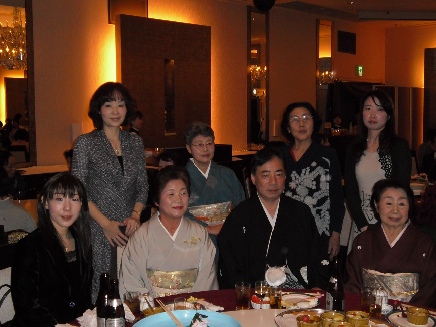 初生けの儀の後、家元のご挨拶、お祝いの舞などの後 乾杯♪ です。