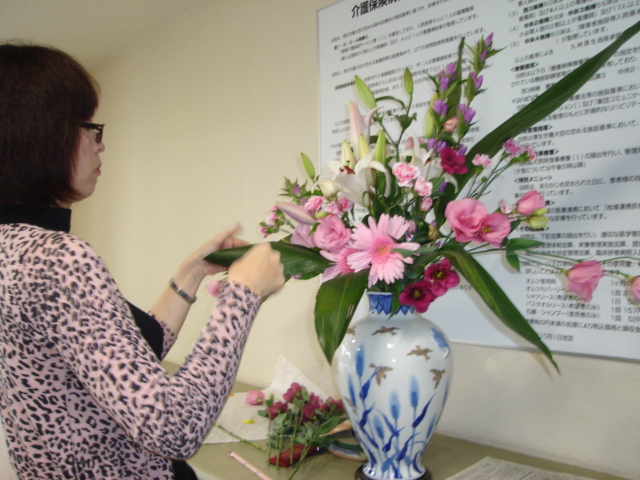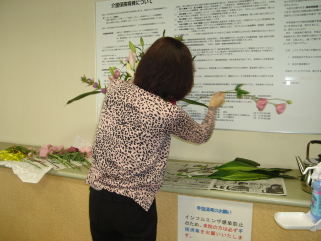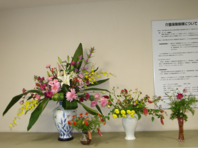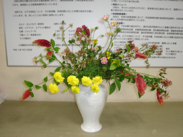 昨日、北九州古賀病院の「秋祭り」のための玄関のお花を活けに行ってきました。