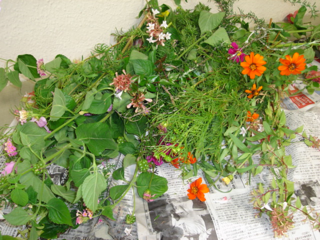 庭園から摘んでこられたお花を