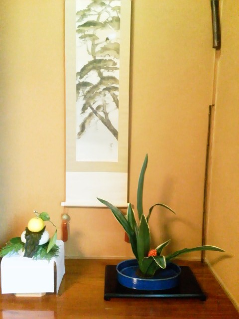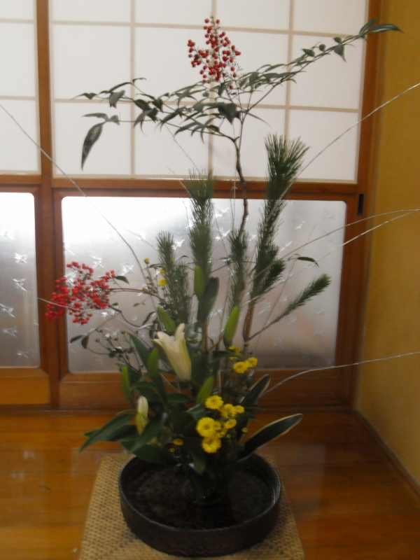 この新年会の翌日が私もいけばな展の生け込みでした。
