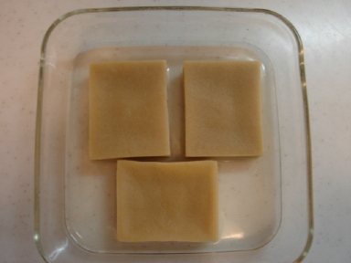 *普通の高野豆腐の場合は、耐熱容器に高野豆腐を並べひたひたのお湯